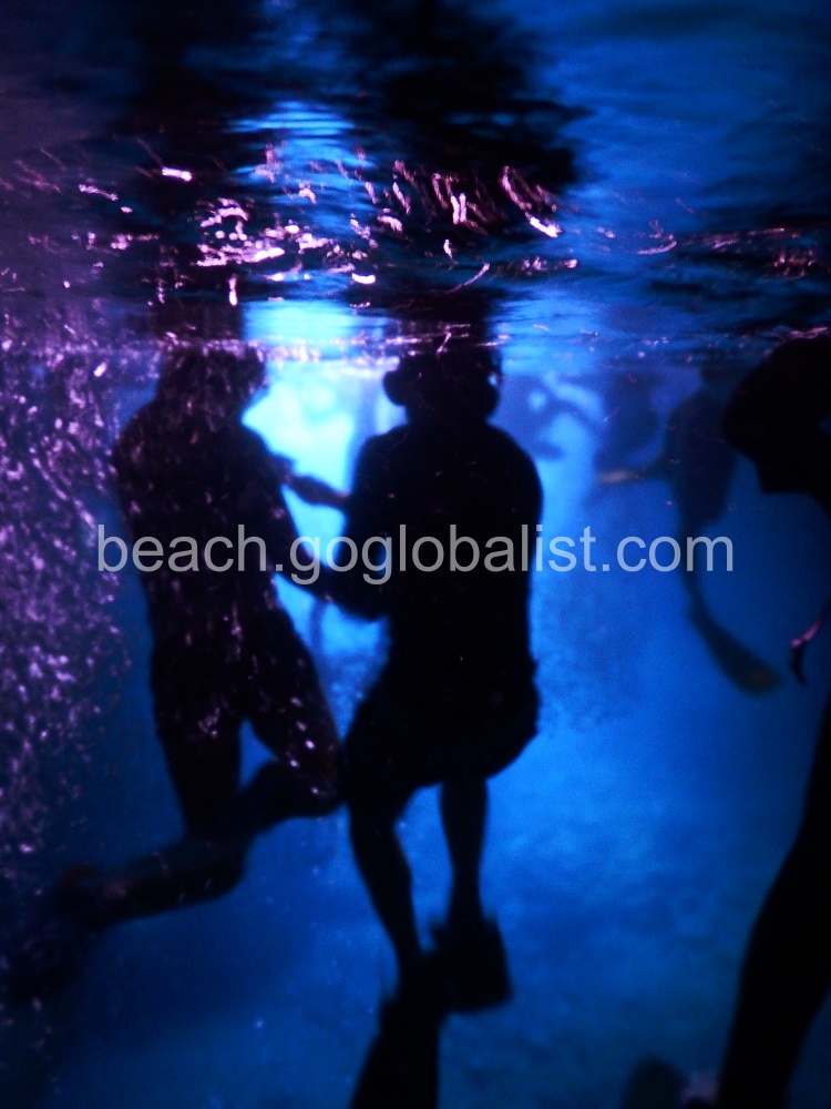 もし泳ぎが得意な人は、水中に潜ってみるとまた違った景色が見えてとてもきれいです。深さは5メートルほどしかないので簡単に潜れます(混雑することもあり危険なので、潜り方を知らない人は潜らないでください)。