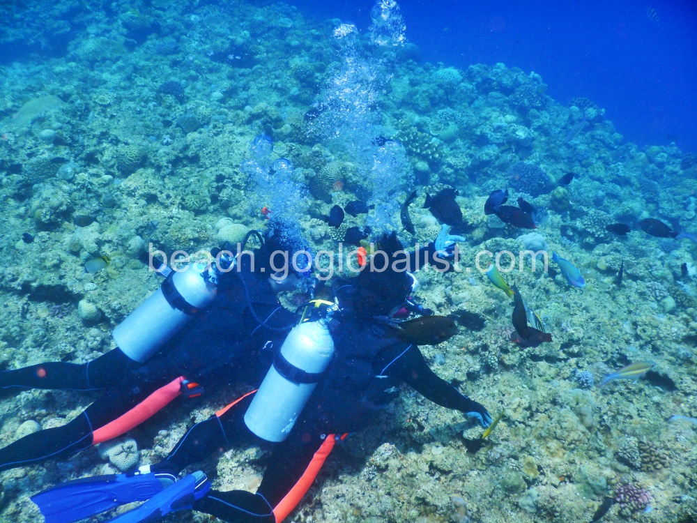 ダイビングの人は10kg以上あるタンクを背負って上り下りしなければならないので大変ですが(写真の左の方にもタンクを背負った人が写っていますね)、シュノーケリングの人にはそんなに大変ではないはず。頑張って降りましょう!